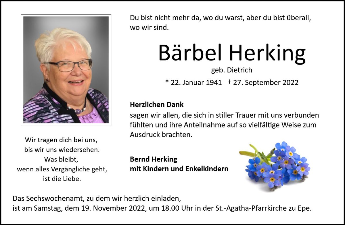 Bärbel Herkinggestorben am 27. September 2022