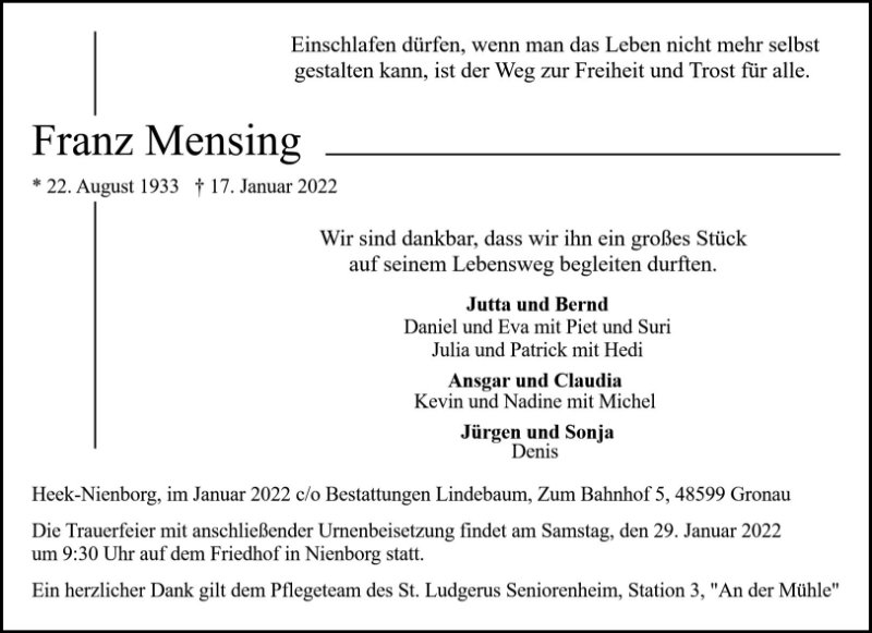 gestorben am 17. Januar 2022 in Heek